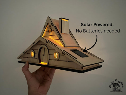Fairy House Kit with Solar Light - DIY Wooden Garden Cottage to Build & Paint - Alina's Craft Kit