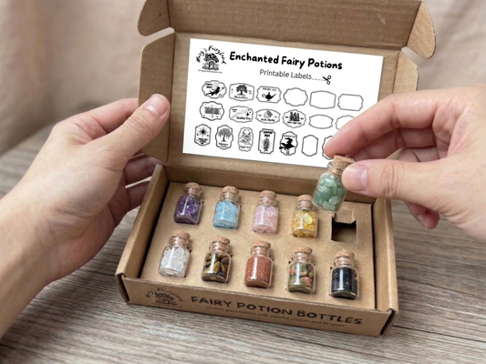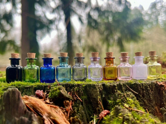 Set of 10 Fairy Potion Bottles with Labels - Mini Glass Bottles for Fairy Gardens