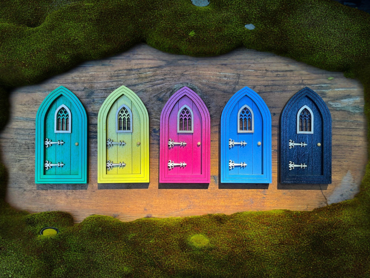 Colored Gothic Fairy Doors – Sealed for Outdoor Fairy Gardens