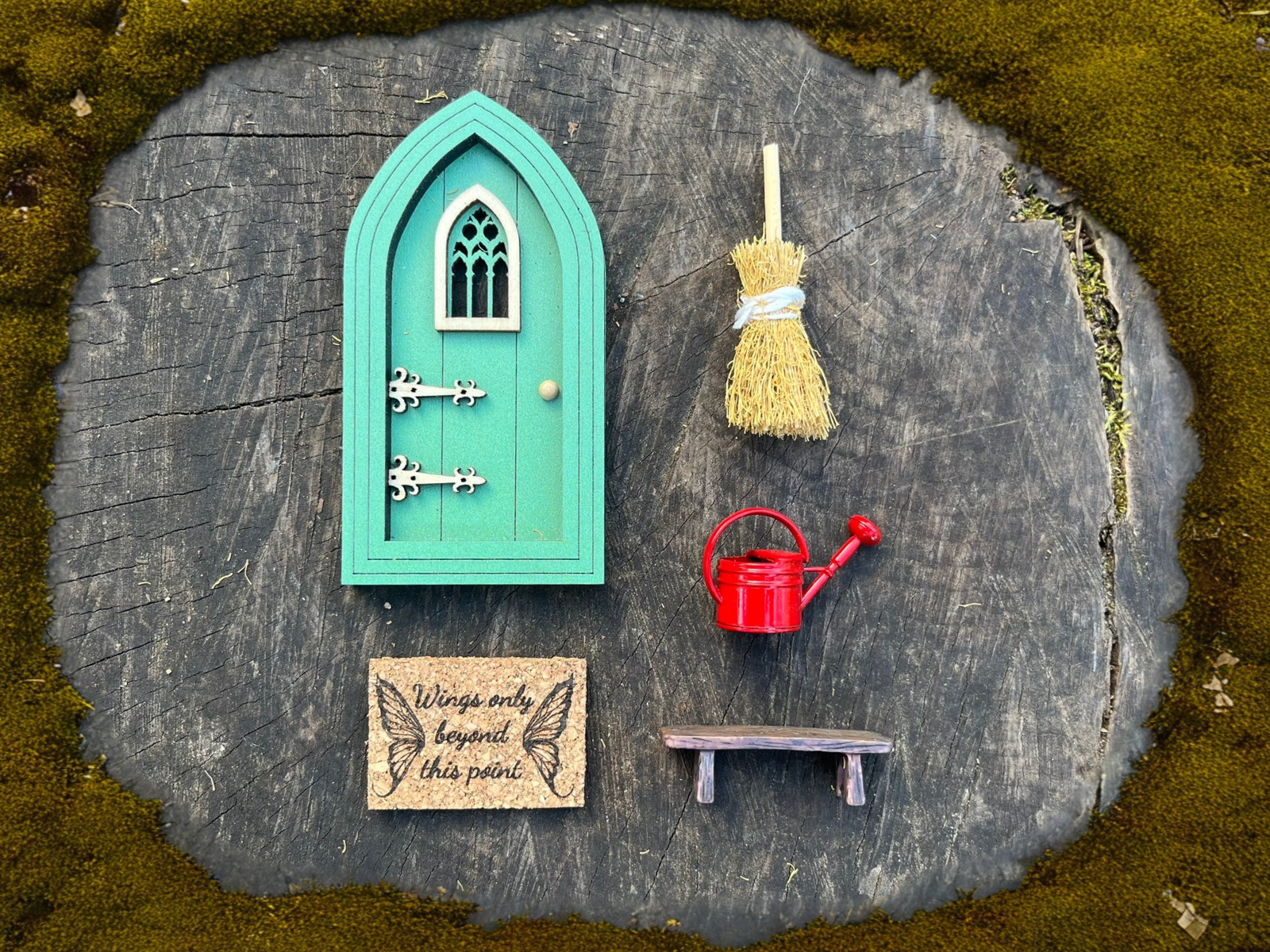 Fairy Garden Gift Set: FairyDoor, Bench, Broom & Watering Can