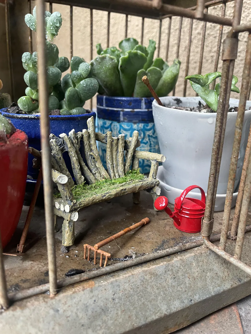 Elevate your fairy garden with our Set of 4 Miniature Garden Tools. Crafted from rustic metal, each tool measures just 2" x 0.4" (5cm x 1cm), adding enchanting detail to your pixie and gnome landscape. The rusted finish provides an authentic touch, creating the illusion of well-loved gardening essentials. Perfect for both indoor and outdoor decor, this set includes a rake, shovel, pitchfork, and hoe – essential accessories for your fairy-sized world. Let the magic unfold as you enhance your fairy garden with these whimsical ornaments.