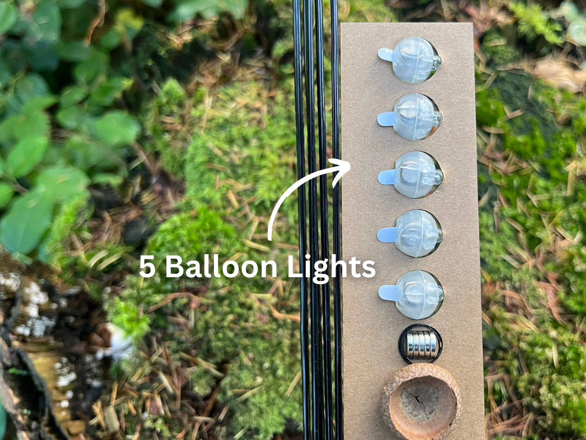 Create your own enchanting fairy lanterns with this all-inclusive DIY kit, perfect for assembling five whimsical lights. The kit includes: 5 balloon lights, 5 magnets, 5 acorn caps, 5 jump rings, and 5 metal wires.