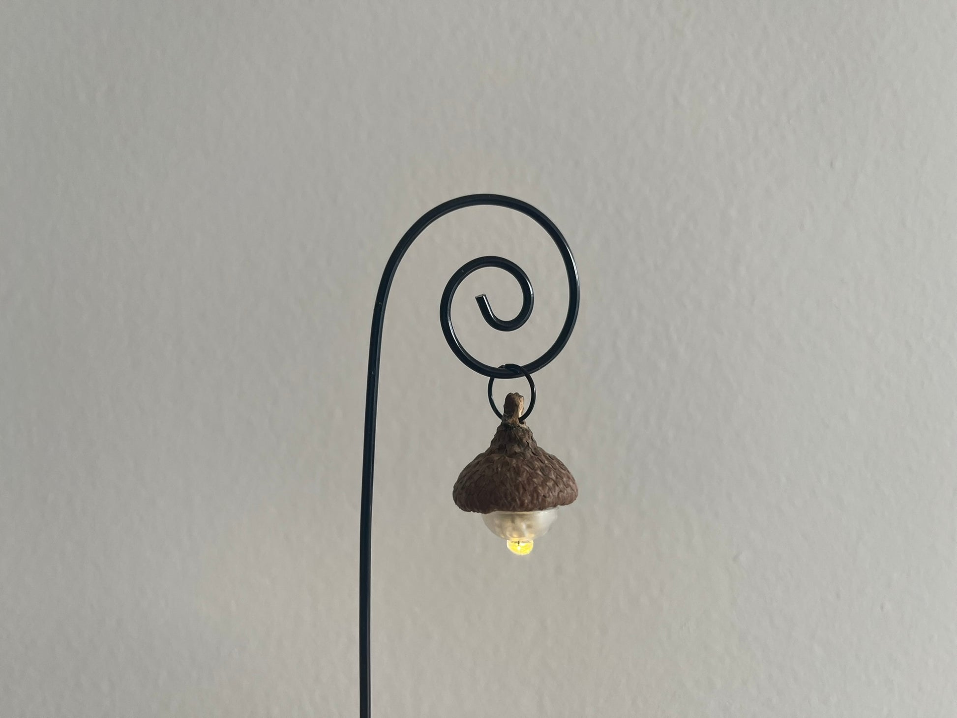 What makes each lantern truly unique is the use of real acorn caps as lampshades—no two are exactly alike! These natural touches bring authentic woodland charm and make every piece a little different.